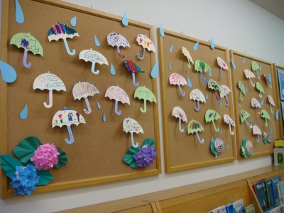 みんなでつくろうディスプレイ、みんなが作った傘の展示中です♪