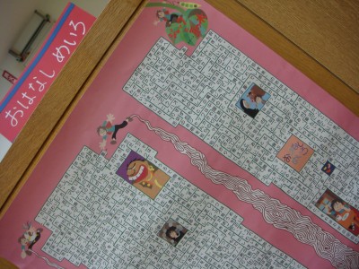 お次は発表会のプログラムを持って行っては、他のクラスが演じていたお話を借りてきました。