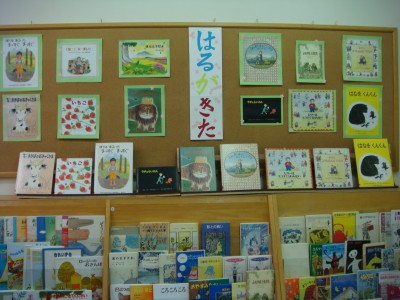 子ども図書館には『はるのおすすめえほん』展示中です♪