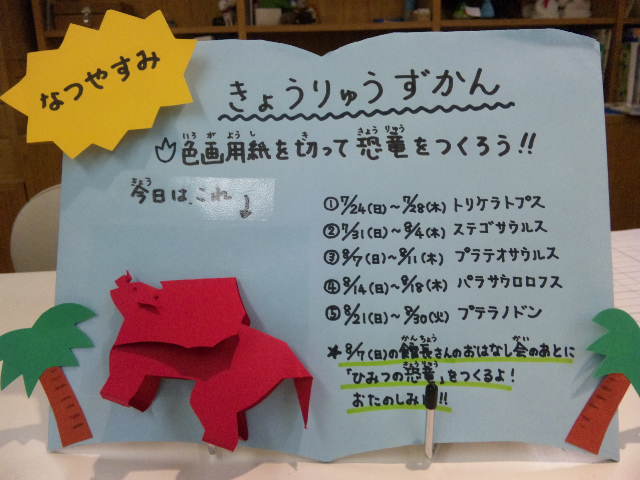 夏休み工作、切り紙の恐竜図鑑がはじまってまーす!