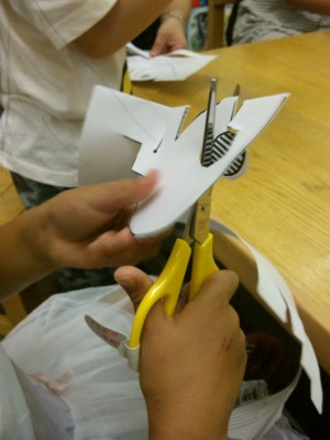 細かい部分が多くてなかなか難しかったそうですが、しっかり集中して、無言で口をとんがらせながらハサミを操ったそうです。(集中すると口がとんがることが多いのです)